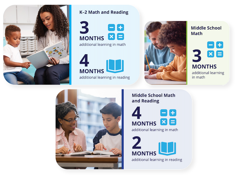 When educators are equipped with the right professional development and students receive High-Impact Tutoring, outcomes improve. Our evidence-based approach delivers measurable gains in reading, math, and overall academic success.